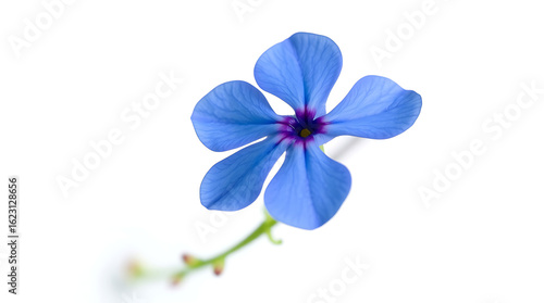 Fototapeta premium A captivating macro of a single blue forget-me-not blossom, isolated on white, reveals its delicate petals and vibrant beauty, embodying the essence of spring flora