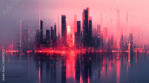 © Pter, Fototapeta premium A Captivating Minimalist Urban Skyline with Dynamic Geometric Shapes and Soft Lighting