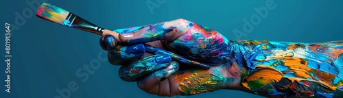 © Chano_1_na, Fototapeta premium A captivating model of a hand holding a paintbrush transforming into a rocket soaring into the sky, representing the power of art to inspire innovation , style