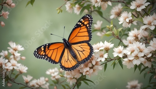 Fototapeta premium A captivating monarch butterfly, elegantly perched on blooming flowers under...