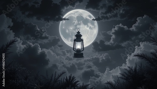 © ambacim, Naklejka premium A captivating nocturnal scene with a solitary lantern.