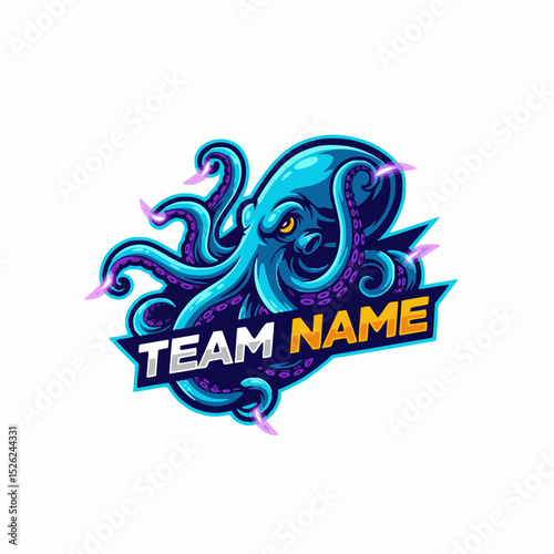 © The, Obraz premium A Captivating Octopus Vector Logo Design for E-sports Gaming Team With Purple and Blue Theme