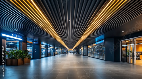 Fototapeta premium A Captivating Perspective of an Expansive Hallway Featuring a Long Ceiling...