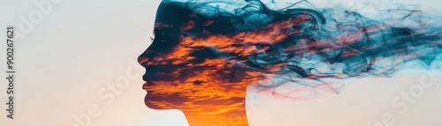Fototapeta premium A captivating silhouette blending with vibrant clouds, representing...