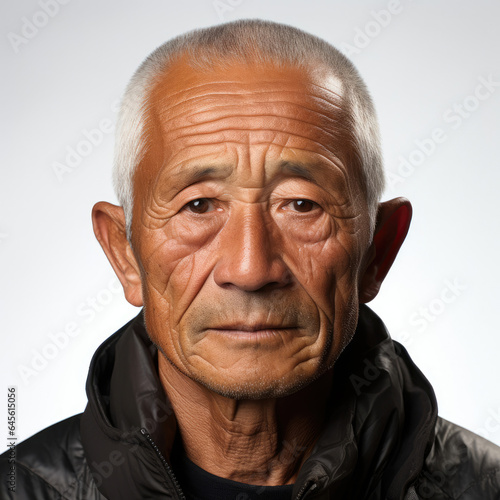 © GraphicsRF, Obraz premium A captivating studio headshot of a skeptical 68-year-old Southeast Asian man.