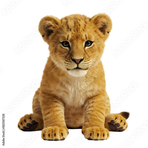 © Ike, Fototapeta premium A captivating studio shot of a young lion cub, showcasing its adorable features and soft fur.