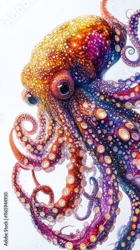 © Montaha Hossain, Obraz premium A Captivating Underwater Octopus, A Colorful Jewel of the Deep Sea, An Intricate and Vivid Artistic Masterpiece