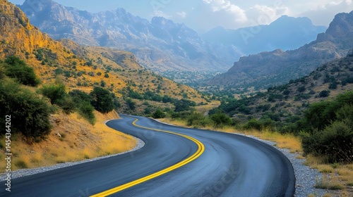 Fototapeta premium A captivating view of a winding road through majestic mountains under a clear...