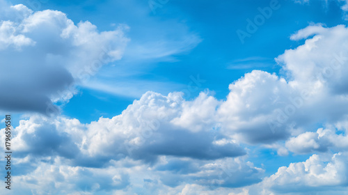 © Sajib, Naklejka premium A captivating view of fluffy white clouds scattered across a bright blue sky expanse