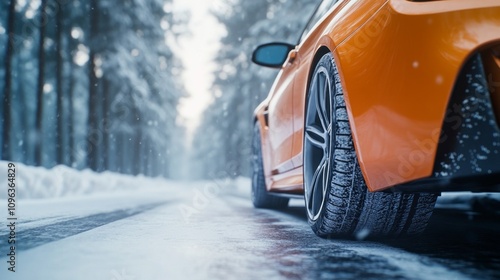 © liliyabatyrova, Obraz premium A car is parked on a snowy road with a snowy background