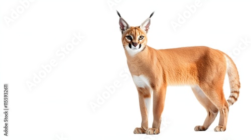 © irawan, Fototapeta premium A Caracal Cat Stands Against A White Background