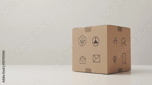 Obraz premium A cardboard box with various icons representing delivery and communication.