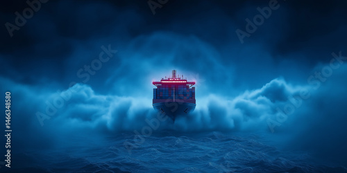 Naklejka premium A cargo ship sailing through stormy ocean waters evoking a sense of power and perseverance.