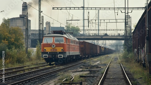 © Mr image, Fototapeta premium 15. A cargo train being loaded with goods at a rail yard