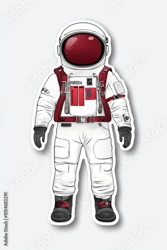 Fototapeta premium A cartoon astronaut in a space suit with a red-tinted visor, exuding adventure and exploration in a playful design.