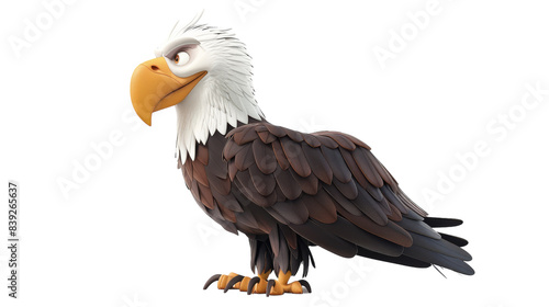 © FMSTUDIO, Obraz premium A cartoon bald eagle stands on a white background