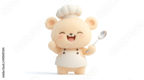 © Last, Naklejka premium A cartoon bear is holding a spoon and smiling