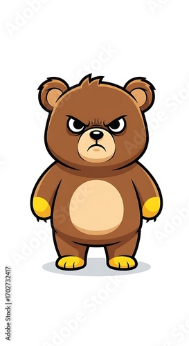 © Malin, Obraz premium A cartoon bear with a grumpy expression stands out against a plain white background.