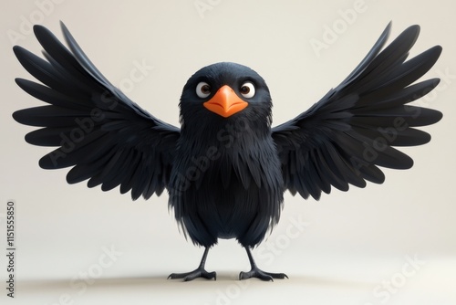 Fototapeta premium a cartoon bird with black feathers and an orange beak spreads its wings