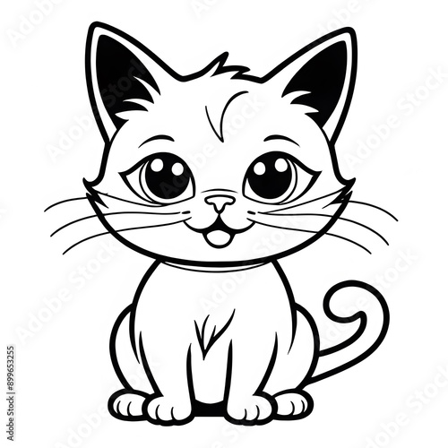 © AHMED, Obraz premium A cartoon cat with big eyes on a white background, AI