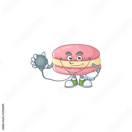 Obraz premium A cartoon character of strawberry macarons Doctor using tools