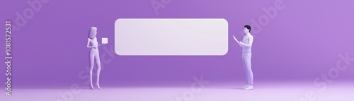 © PhornpimonNutiprapun, Obraz premium A cartoon characters standing on either side of a blank billboard banner.