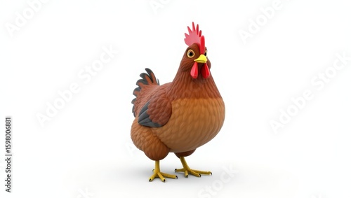 Fototapeta premium A cartoon chicken stands on a plain white background.