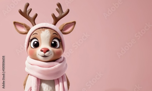 Naklejka premium A cartoon deer with a pink scarf on its neck
