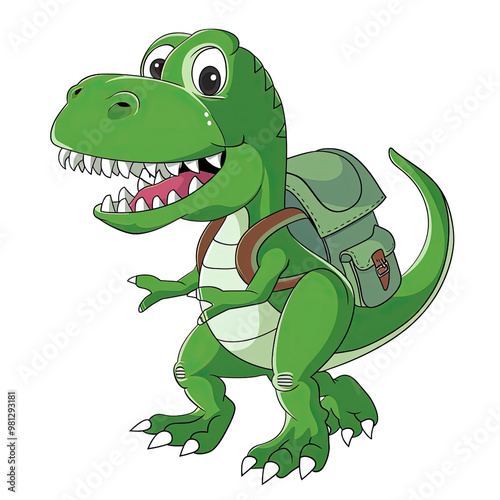 Fototapeta premium A cartoon dinosaur is carrying a backpack