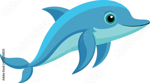 Fototapeta premium A cartoon dolphin is swimming in the ocean