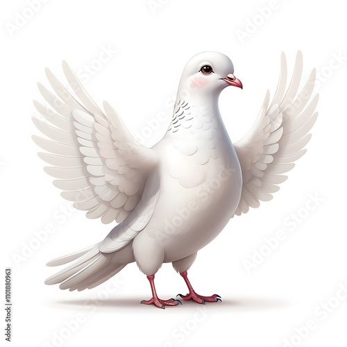© Michel, Fototapeta premium A cartoon dove standing on a white background.