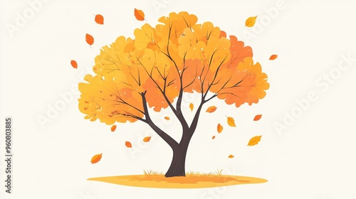 © Suleyman, Fototapeta premium A cartoon drawing of a yellow and orange tree with golden leaves, perfect for representing autumn in a park or forest.