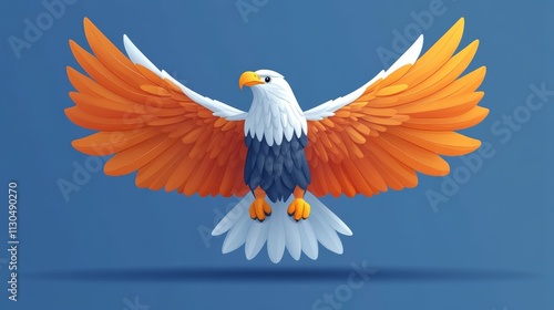 © Kane-VIP, Obraz premium A cartoon eagle landing, flat vector illustration, bold lines, plain white background