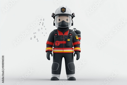 Fototapeta premium A cartoon firefighter stands confidently with protective gear in a clean,...