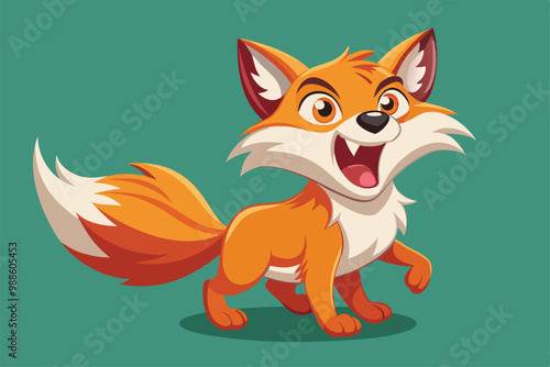 © Iftikhar alam, Obraz premium A cartoon fox character with an excited expression is roaring joyfully, a cartoon character Roaring fox