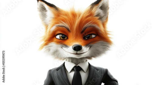 © Sunijsa, Obraz premium A cartoon fox is wearing a suit and tie and has a serious expression on his face