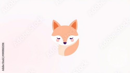 © Abdullah, Fototapeta premium A cartoon fox with closed eyes and pink cheeks on a light background in a minimalist style art work