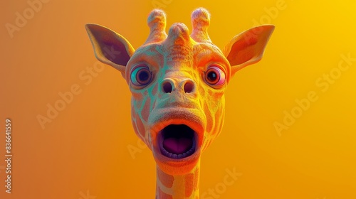 Naklejka premium A cartoon giraffe with a surprised expression, rendered in vibrant colors...