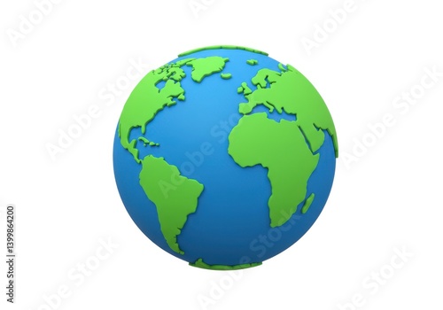 © Habiba, Naklejka premium A cartoon globe featuring continents in green and oceans in blue