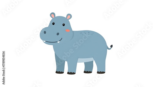 Naklejka premium A cartoon illustration of a friendly hippopotamus standing on its four legs,...