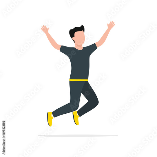 Fototapeta premium A cartoon illustration of a man jumping with arms raised, celebrating success.