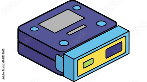 Obraz premium A cartoon illustration of a small electronic device with a screen and buttons
