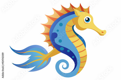 Fototapeta premium A cartoon illustration of a yellow and blue seahorse