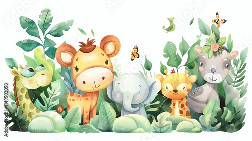 © Galib, Naklejka premium A cartoon illustration of cute jungle animals.