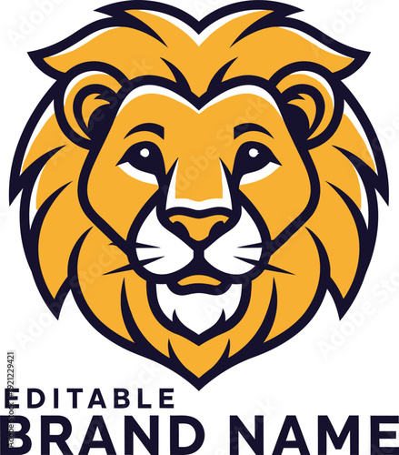 © Ali, Obraz premium A cartoon lion head logo with editable brand name on a white background