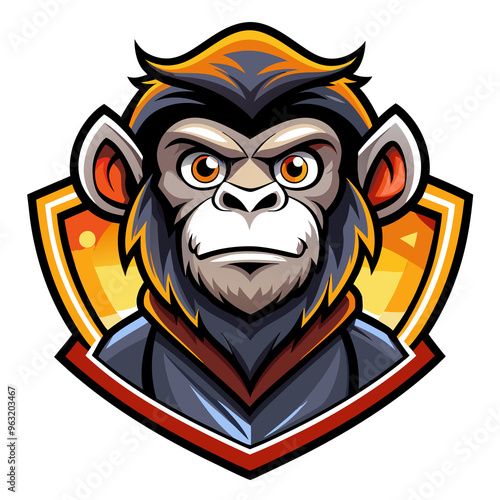 © Socitysh, Fototapeta premium A Cartoon Monkey With Orange Eyes in a Shield Logo