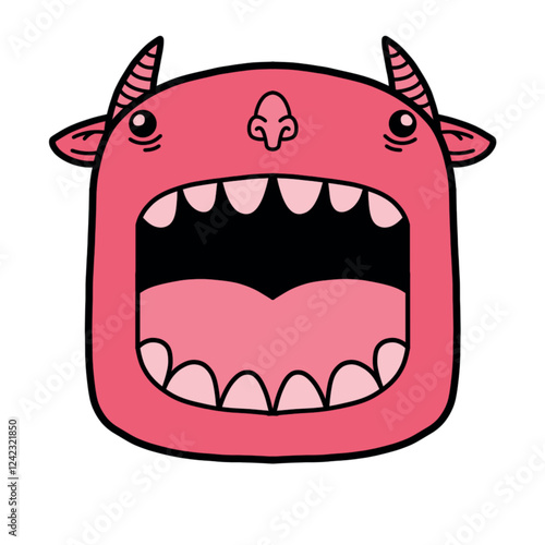 © Asep, Naklejka premium A cartoon monster with a big mouth and horns