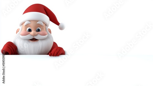 © Nathamanee, Naklejka premium A cartoon of Santa Claus with a red hat and a white background
