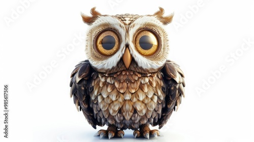 © pook, Naklejka premium A cartoon owl with big eyes and a goofy expression