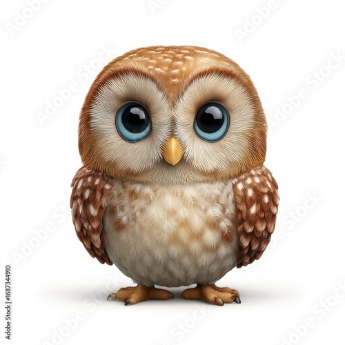 © Sergey Fedchenko, Naklejka premium A cartoon owl with blue eyes and brown and white fur